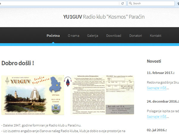 Amateur Radio station "Kosmos" YU1GUV, located in Paracin