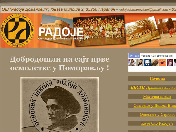 Elementary school "Radoje Domanovic", Knjaza Milosa 2, Paracin