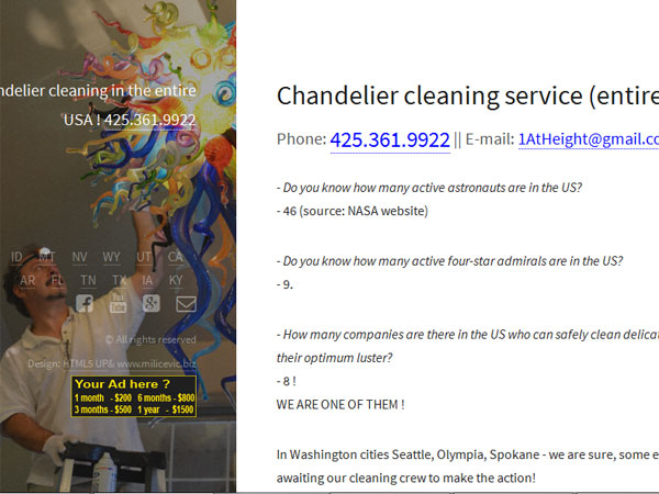Chandelier cleaning company, located in Seattle, WA, but operates in entire USA.